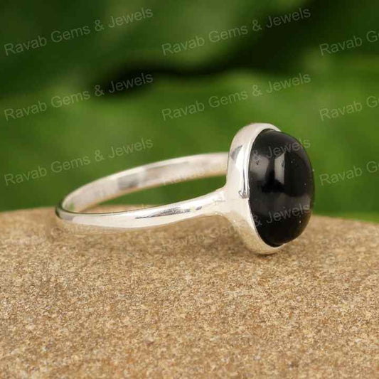 Best Selling Natural Black Obsidian Oval Cabochon 10x14mm Solid 925 Sterling Silver Bezel Setting Handmade Find Women Ring