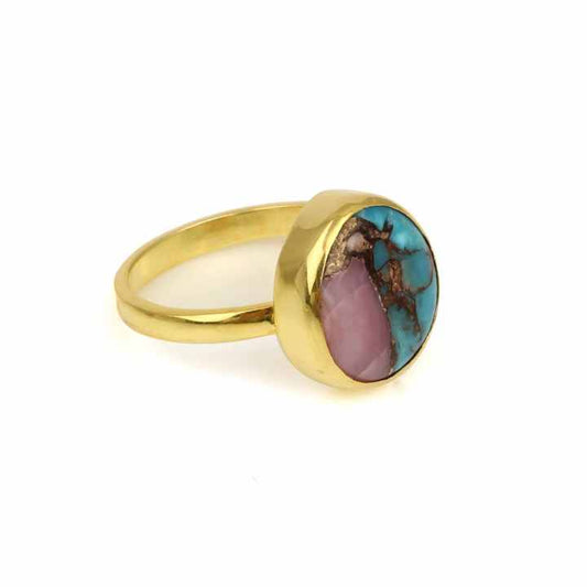 Best Selling Genuine 925 Sterling Silver Natural 10mm Pink Opal Copper Turquoise Gemstone 18k Gold Plated Dainty Ring for Women