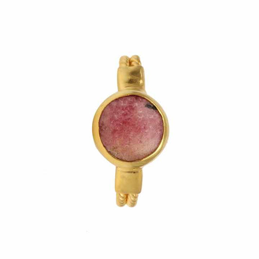 Best Selling High Quality Genuine Pink Rhodochrosite Stone Jewelry Gold Plated Sterling Silver Designer Statement Ring for Women