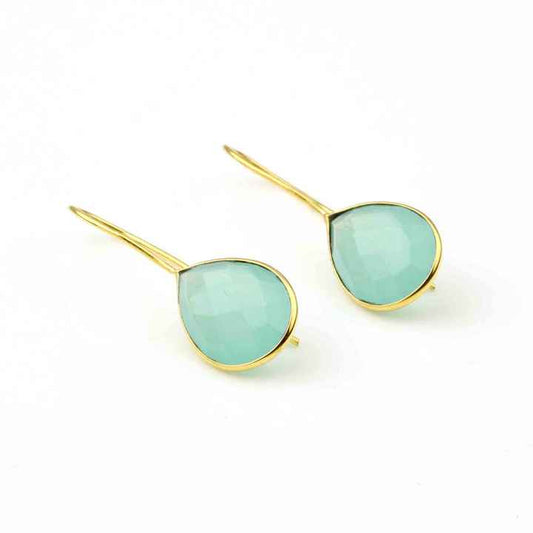 Best Selling Genuine Aqua Chalcedony 18k Gold Plated Sterling Silver Waterproof Jewelry Dainty Teardrop Fine Earrings for Her
