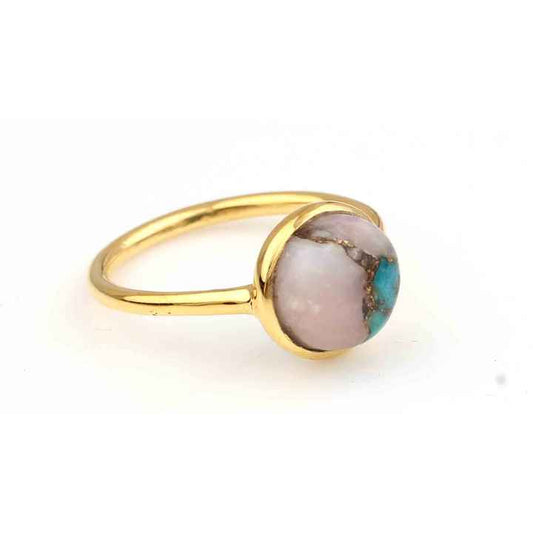 Best Selling Mohave Pink Opal Copper Turquoise Stone Genuine 925 Silver 12mm Round Shape Band Dainty Ring for Women Fine Jewelry