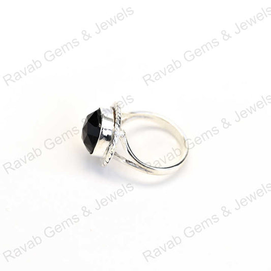 Best Selling Solid 925 Sterling Silver Natural Black Onyx Rose Cut Cushion Shape Bezel Setting Ring for Women Handmade Jewelry