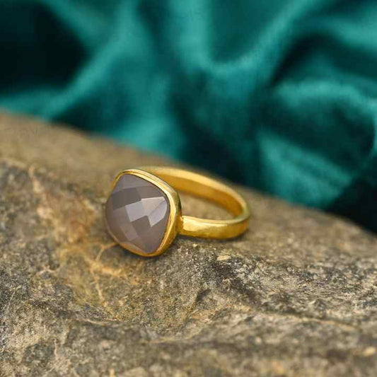 Best Selling Solid 925 Silver Fine Jewelry 12mm Grey Chalcedony Faceted Cushion Cut Gold Vermeil Eternity Band Ring for Women