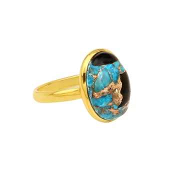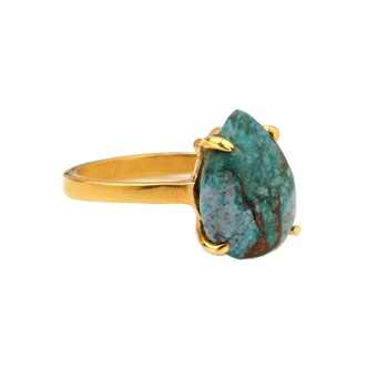 Best Selling Solid 925 Sterling Silver 18k Gold Plated Chrysocolla Copper 12X16mm Pear Bezel Setting Ring for Women Jewelry