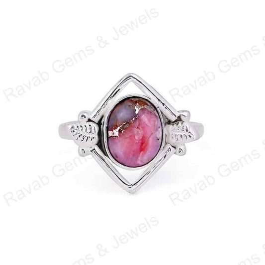 Best Selling Solid 925 Sterling Silver Natural Pink Copper Opal Gemstone Leaf Designer Fine Fashion Women Ring Handmade Jewelry