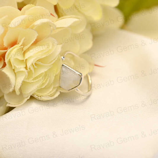 Best Selling Natural Rainbow Moonstone Sterling 925 Silver 10x10mm Diamond Cut Faceted Bezel Setting Adjustable Ring for Women