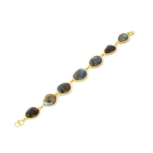 Best Selling Natural Blue Flash Labradorite Gemstone Bezel 925 Silver 18k Gold Plated Chain Adjustable Uneven Bracelet for Women