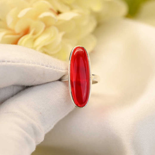 Best Selling Solid 925 Sterling Silver Red Garnet Hydro 10x30mm Long Oval Bezel Setting Ring for Women Fine Handmade Jewelry
