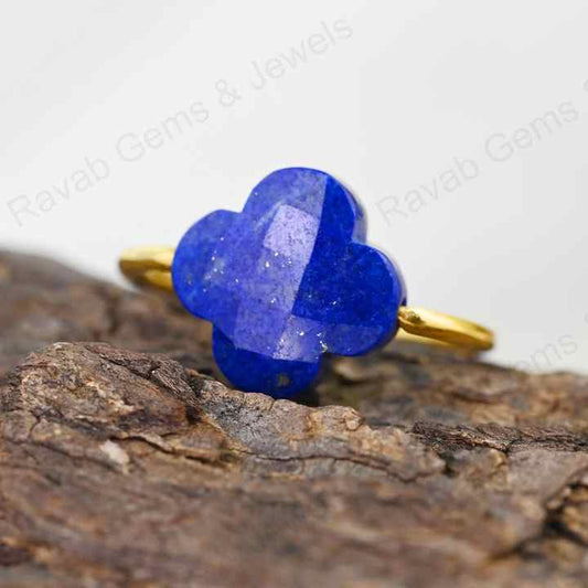 Best Selling Natural Lapis Lazuli Clover Flower Shape Gemstone Solid 925 Silver 18k Gold Plated Rotating Women Ring Fine Jewelry