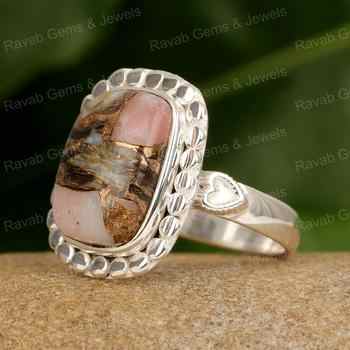 Best Selling Natural Pink Copper Opal Octa Cushion Shape 10x14mm Solid 925 Sterling Silver Heart Designer Handmade Women Ring