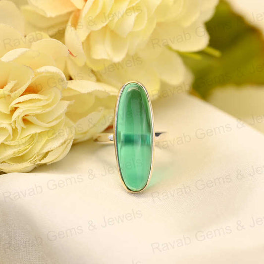 Best Selling Solid 925 Sterling Silver Green Fluorite Hydro 10x30mm Long Oval Bezel Setting Ring for Women Fine Handmade Jewelry