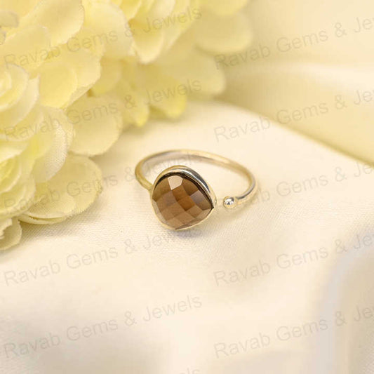 Best Selling Solid 925 Sterling Silver Smoky Quartz 10x10mm Checker Cut Bezel Setting Ring for Women Fine Handmade Jewelry