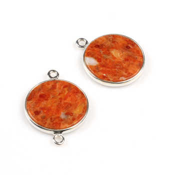 Best Selling Sterling Silver Wholesale Apple Coral Copper Stone Loose 12mm Circle Coin Bezel Charm Connector DIY Jewelry Finding