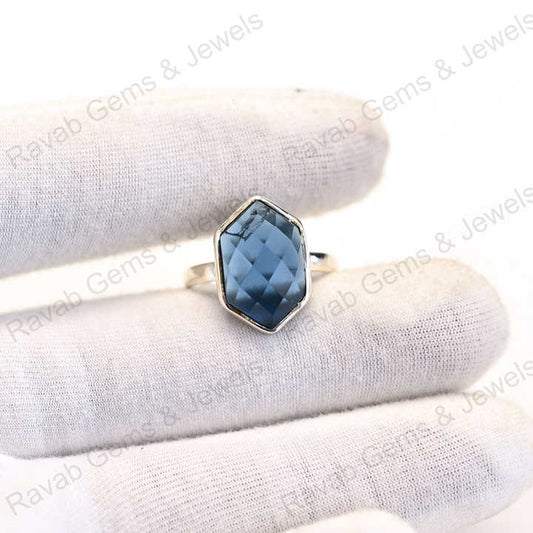 Best Selling Natural Lapis Lazuli Gemstone Genuine 925 Sterling Silver Coffin Shape Bezel Setting Dainty Women Ring Fine Jewelry
