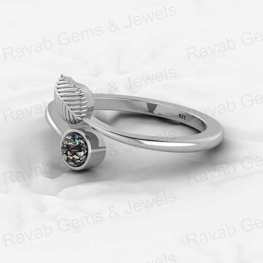 Best Selling Solid 925 Sterling Silver Black Ethiopian Opal Bezel Leaf Designer Adjustable Ring for Women Birthstone Jewelry