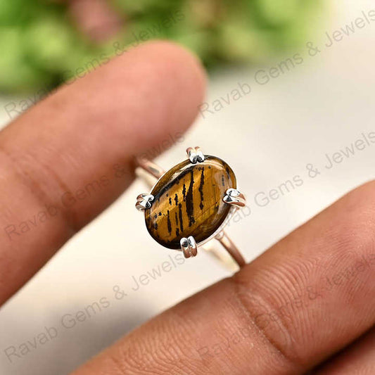 Best Selling Solid 925 Sterling Silver Natural Tiger Eye Oval Cabochon Setting Ring for Women Fine Handmade Christmas Jewelry