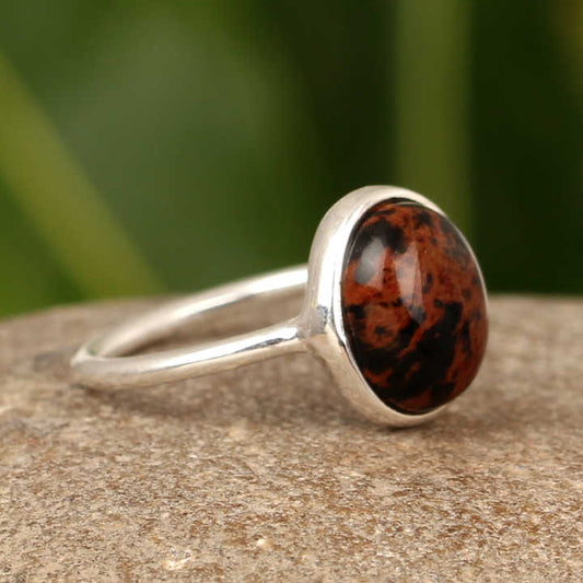 Best Selling Natural Mahogany Obsidian Oval Cabochon 10x14mm Gemstone Solid 925 Sterling Silver Women Handmade Ring Fine Jewelry