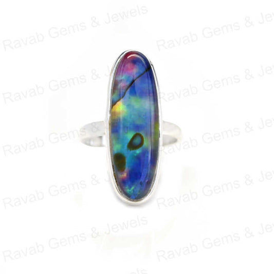 Best Selling Solid 925 Sterling Silver Abalone Shell Quartz 10x30mm Long Oval Bezel Setting Ring for Women Fine Handmade Jewelry