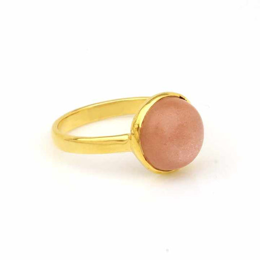 Best Selling New Design 10mm Natural Peach Moonstone Bezel 18k Gold Plated Sterling Silver Round Dainty Gemstone Ring for Women