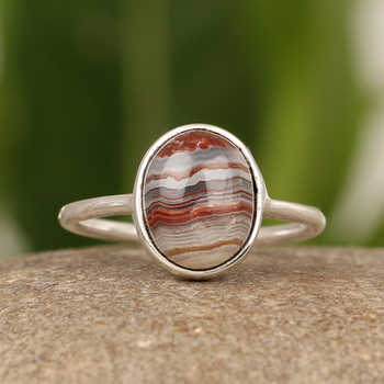 Handmade 925 Sterling Silver Fine Ring for Women Rhodium 10x14mm Oval Genuine Crazy Lace Agate Gemstone for Party Wear Jewelry