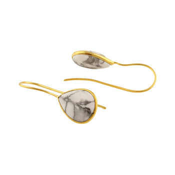 Handmade Indian 925 Sterling Silver Fine Dangle Earrings Natural White Howlite Gemstone With Gold Plating Wholesome Jewelry