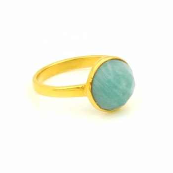 High Quality 10mm Natural Amazonite Gemstone Ring Delicate Handmade 18K Gold 925 Silver Plated Excellent Women's Fine Jewelry
