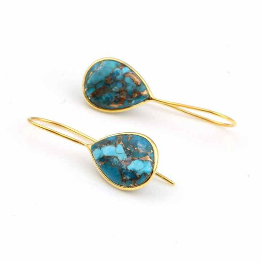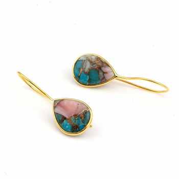 High Quality 12x16mm Mohave Pink Opal Bezel Earrings Copper Turquoise Gemstone 18K Gold Plated Sterling Silver Pear Drop Her