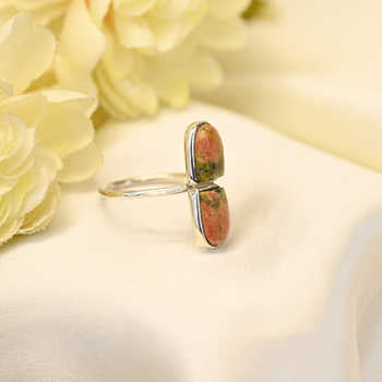 Handmade 925 Sterling Silver Fine Ring for Women Christmas Sale Natural Unakite Gemstone Bezel Setting 8x10mm Black Rhodium