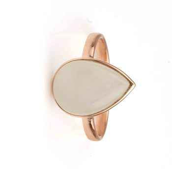 High Quality 12x16mm Genuine White Moonstone Polished 2 Micron Pear Women's Sterling Silver Rose Gold Plated 2 Micron Pear Ring