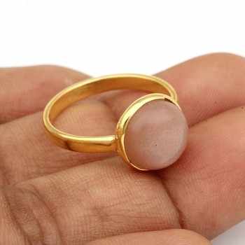 Handmade Genuine 925 Silver Gold Vermeil Eternity 10mm Natural Peach Moonstone Round Cabochon Bezel Ring Fine Jewelry For Women