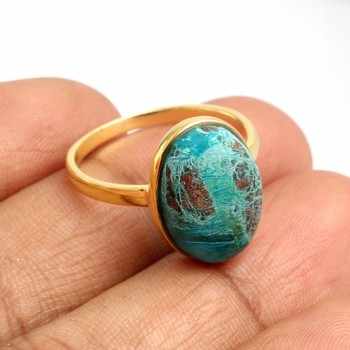 High Quality 10x14mm Oval Bezel Ring Women Solid 925 Sterling Silver 18k Gold Plating Genuine Natural Chrysocolla Fine Jewelry