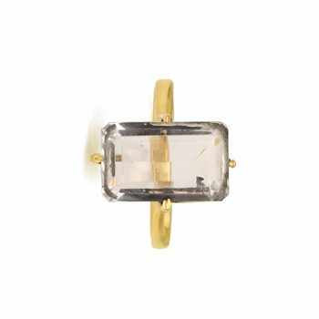 Handmade Design Natural Clear Quartz Emerald Cut Ring Sterling Silver With Gold Plating Fine Semi-Precious Crystal Quartz Ring