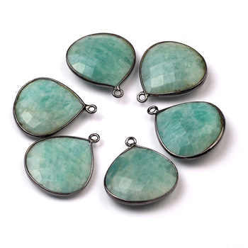 High Quality 12mm Natural Amazonite Gemstone Bezel Heart Pendant Necklace Gold Sterling Silver Rhodium Fine Pendants Charms