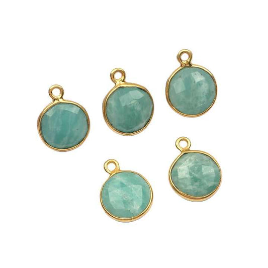 High Quality 12mm Natural Amazonite Gemstone Round Shape 925 Silver Bezel Charm Wholesale Lot For Pendants Necklace Fine Jewelry