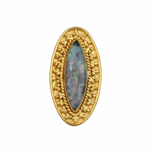 Handmade Natural Abalone Shell Sterling Silver Gold Plated Marquise Ring