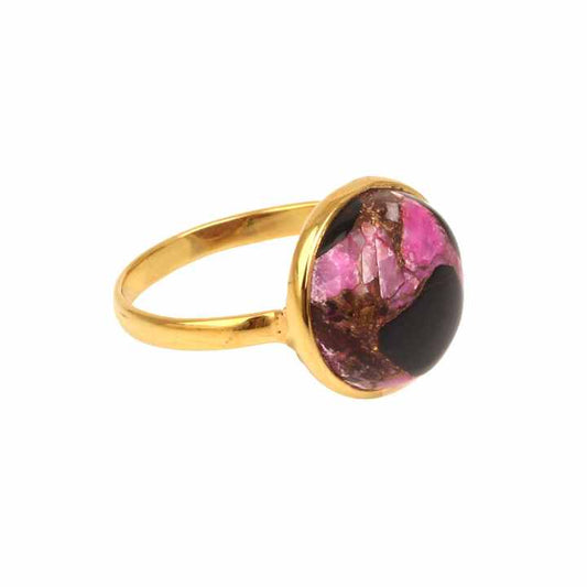 High Quality 12mm Pink Black Copper Turquoise Stone 18k Gold Plated Pure Sterling Silver Bezel Set Dainty Round Ring for Women
