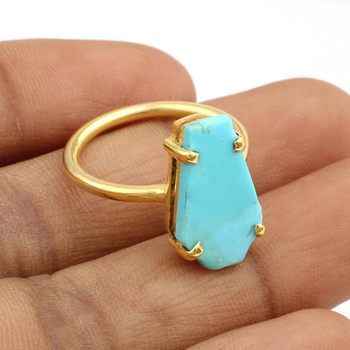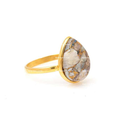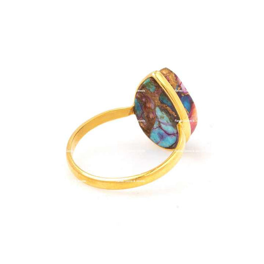 Hot Selling New Design 12x16mm Natural Mix Oyster Copper Turquoise Stone 18k Gold Plated Dainty Boho Pear Shape Ring for Women