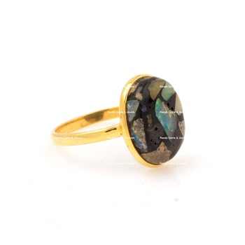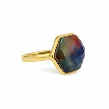 Latest 18K Gold Plated Fine Jewelry Ring Simple Hexagon Shape Featuring 12mm Abalone Shell Hydro Quartz Bezel Setting for