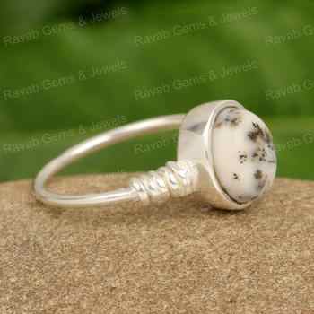 Latest Design New Arrival Natural Dendric Opal Oval Cabochon 10x14mm Solid 925 Sterling Silver Twisted Band Women Handmade Ring