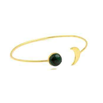 Hot Selling Women's 9mm Malachite Gemstone 18k Gold Plated Solid 925 Sterling Silver Dainty Moon Adjustable Open Cuff Bangle