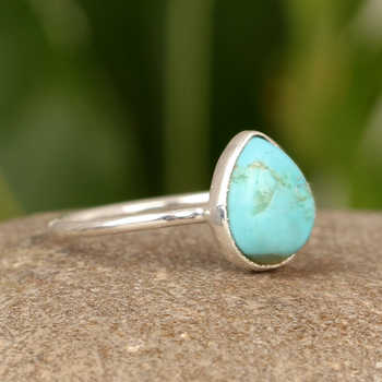 Hot Selling Unique Collection Natural Arizona Turquoise Pear Shaped 925 Sterling Silver Fine Quality Women's Ring Solid Durable