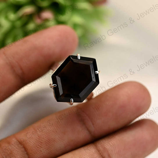 Hot Selling Solid 925 Sterling Silver Natural Black Onyx Hexagon Shape Prong Ring for Women Fine Handmade Gifted Jewelry