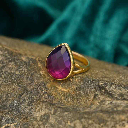 Hot Selling Solid 925 Sterling Silver Bio Color Purple Tourmaline Pear Checker Cut Bezel Setting Ring for Women's Fine Jewelry