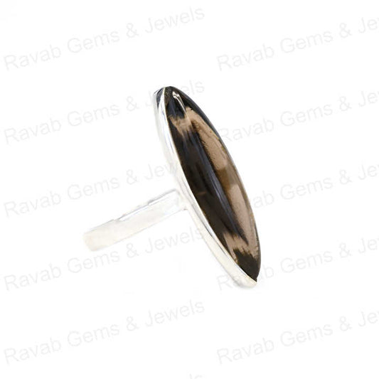 Hot Selling Solid 925 Sterling Silver Smoky Quartz Hydro 10x30mm Marquise Bezel Setting Ring for Women Fine Handmade Jewelry