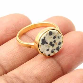 Hot Selling Solid 925 Sterling Silver Genuine Dalmatian Round 12mm Coin Shape 18k Gold Filled Dainty Minimalist Band Ring