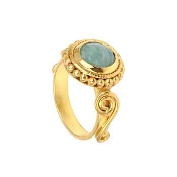 Hot Setting Solid 925 Sterling Silver 18k Gold Plated Green Amazonite Round Cut Bezel Setting Handmade Women Ring Fine Jewelry