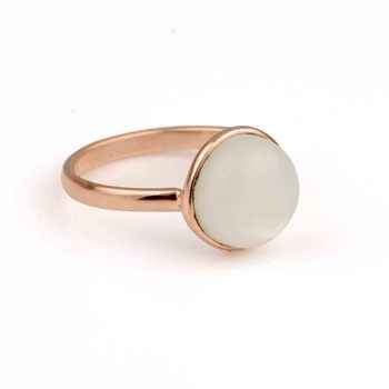 Hot Selling Women's 10mm Natural Rainbow Moonstone Gemstone Ring Dainty Sterling Silver With Rose Gold Plating Fine Jewelry