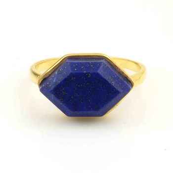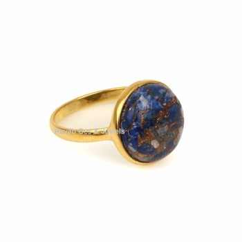 Hot Selling Unisex 12mm Lapis Lazuli Copper Gemstone Bezel 18k Gold Plated Handmade Dainty Ring for Latest Parties Design