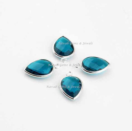 London Blue Topaz Pear Faceted Gemstone 925 Sterling Silver Charms Jewelry, 12x16mm Briolette Gemstone Charm, 1 Pc Wholesale Lot Available