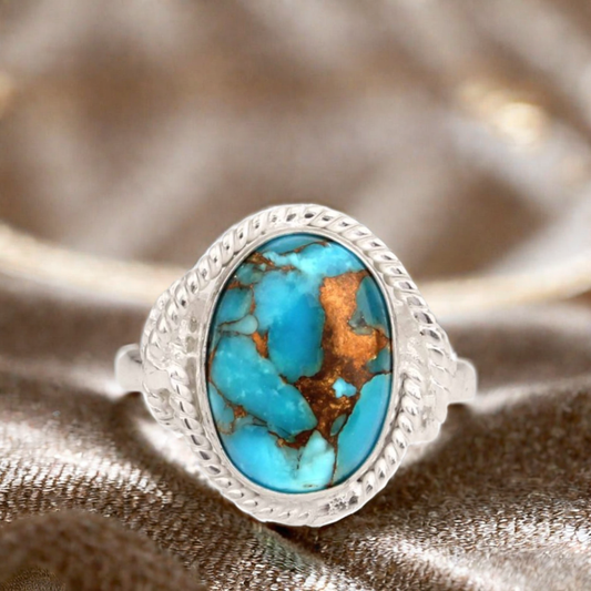 Hot Selling Top Quality Kingman Blue Copper Turquoise Gemstone Genuine 925 Sterling Silver Oval 10x14mm Designer Ring for Women